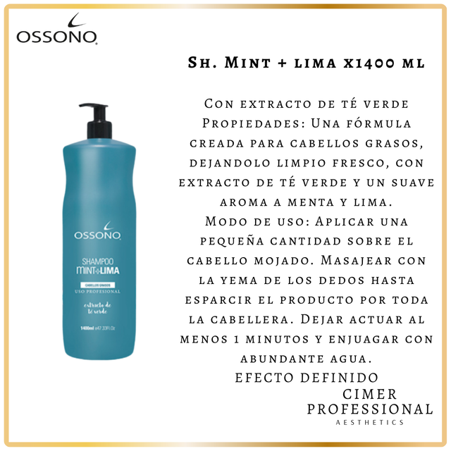 Propiedades: Una fórmula creada para cabellos grasos, dejandolo limpio fresco, con extracto de té verde y un suave aroma a menta y lima.